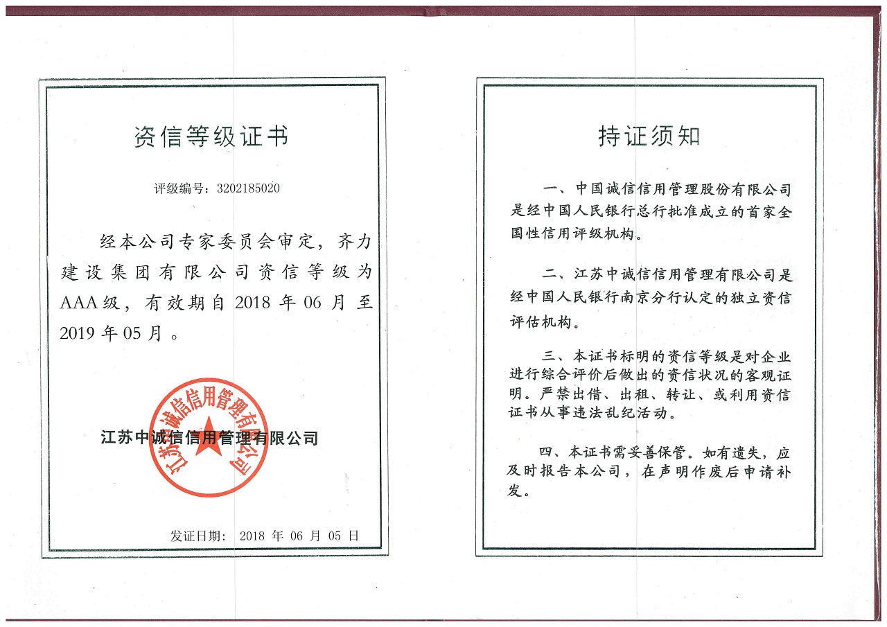 2018AAA资信等级证明